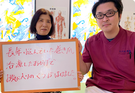 歩くだけで痛かった巻き爪が、今は気にならなくなりました。