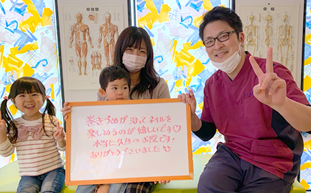 当院の患者様も巻き爪でお悩みの方が多く、何名も五郎丸先生を紹介しましたが、皆様が大変満足しておられました。